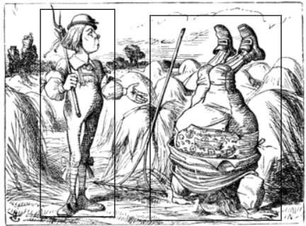 Last night, I had a joint debugging session with ChatGPT-4 which provided an excellent example of how to collaborate productively with an AI. We are currently implementing support for a new C-LARA feature which will allow people to designate mouse-sensitive areas in images so that each area is associated with a phrase, and appropriate things happen when you hover over or click on the area. Our running test example is the above image, where the two rectangles are meant to be associated with the phrases “son” and “Father William”.