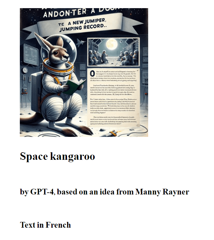 I have added a preliminary integration of DALL-E-3 into C-LARA. If you go to the ‘Add/Remove Images’ view on a project, you now get a new option at the top to use DALL-E-3. So far the only way to use it is to pass the entire text of the project and get a single image back, but we can certainly add more options once we’ve experimented a bit.
