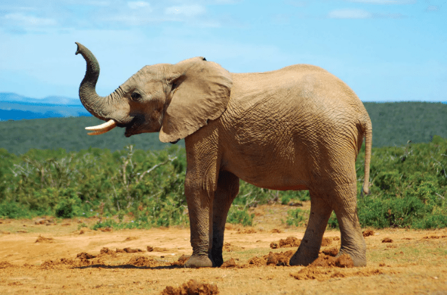De sa trompe, il salue le soleil,
