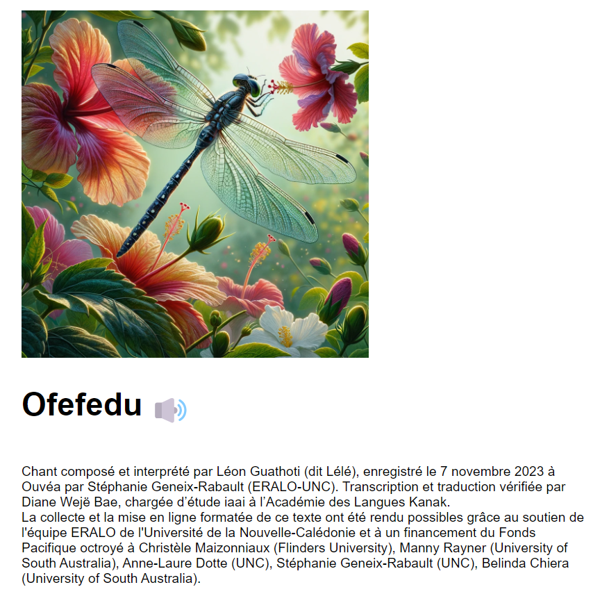 I have been helping Anne-Laure Dotte and Stéphanie Rabault, two linguists specialising in Oceanic languages, to convert some of their material into C-LARA form. Stéphanie, whose research focusses on ethnomusicology, has recorded and transcribed a large number of songs in Kanak languages. She and Anne-Laure now have several of them posted on the C-LARA server. Search for language = Iaai to check them out!
