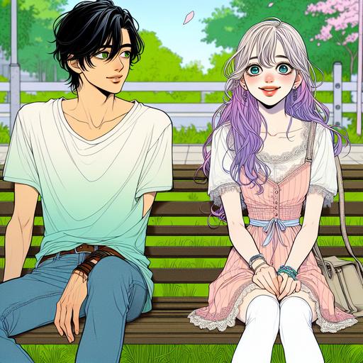 I just tried it on the toy text, “Boy Meets Girl”, that I’ve been using to test the functionality. I specified illustrations in manga/anime style, and the AI’s image illustrating that style looks like this: